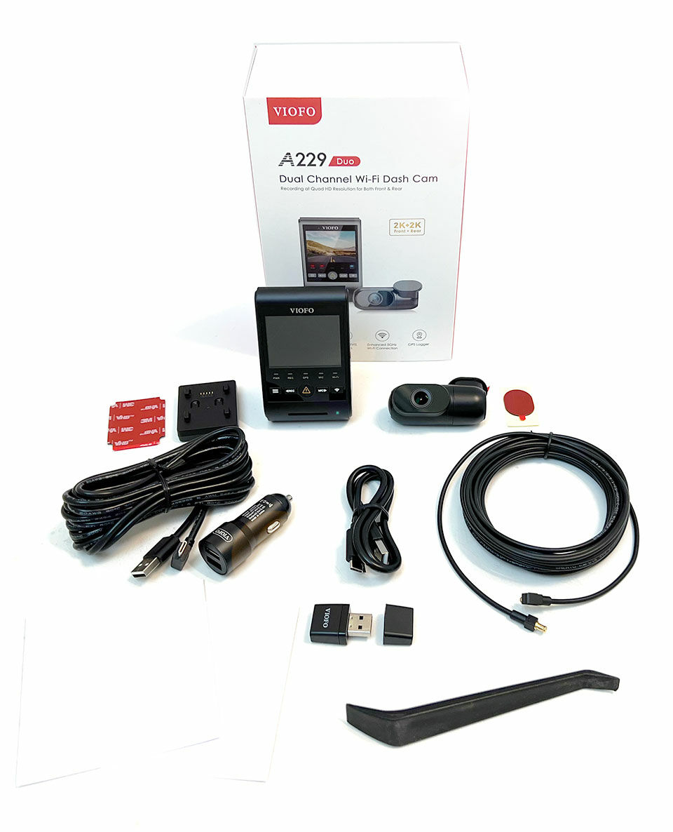 Első kamera, hátsó kamera, GPS antennát tartalmazó talp, mely a szélvédőre rögzíthető (az első kamera levehető és visszatehető), USB-C adatkábel, USB/MicroSD kártya adapter, szivargyújtós tápkábel, tartalék ragasztó pad az első kamerához, tartalék ragasztó pad a hátsó kamerához, hátsó kamera kábel (6m), kábel rejtő szerszám a rejtett kábelezéshez, sztatikus fólia (2db):